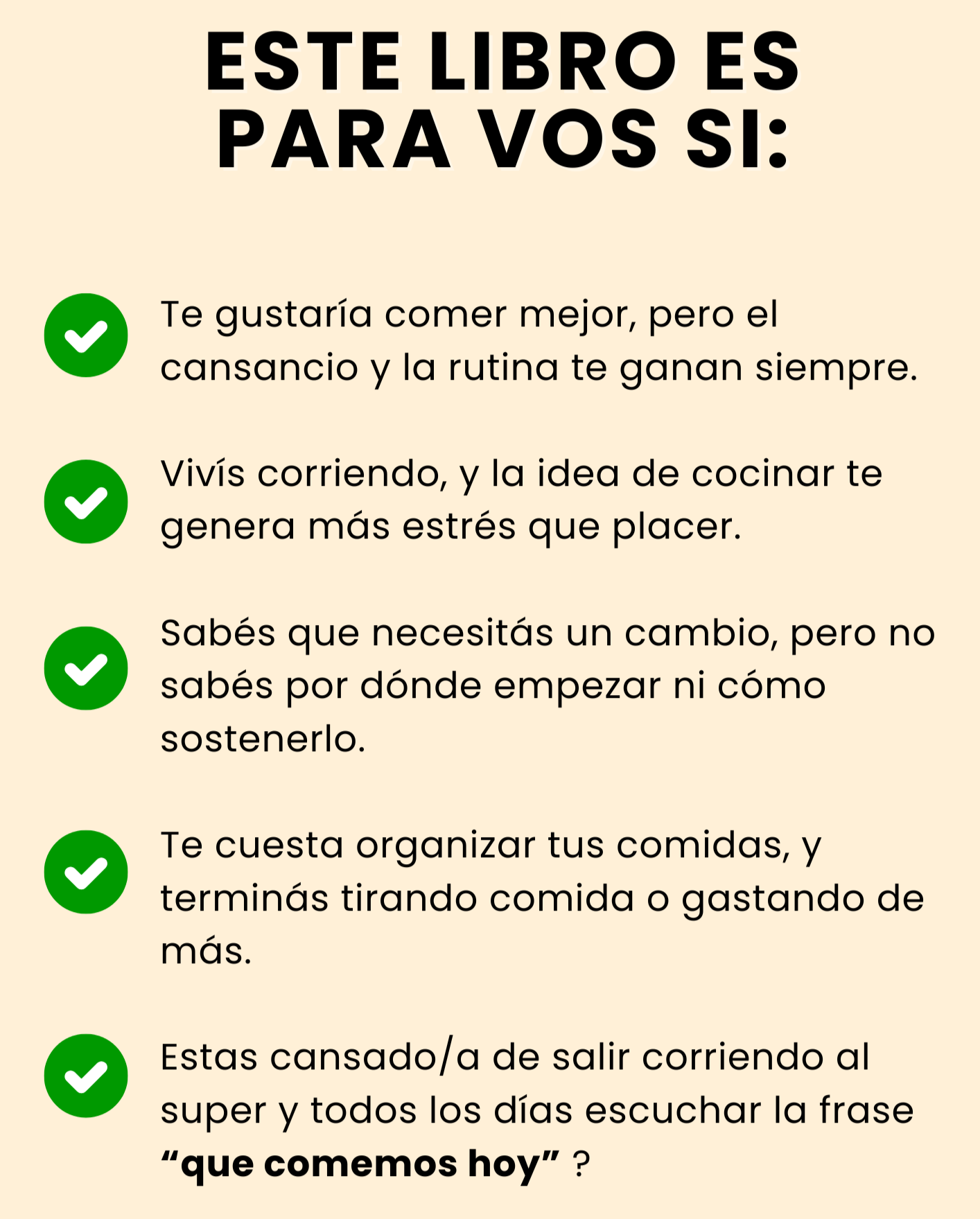 Solo el compromiso real de ayudarte a transformar tu forma de cocinar y alimentarte.