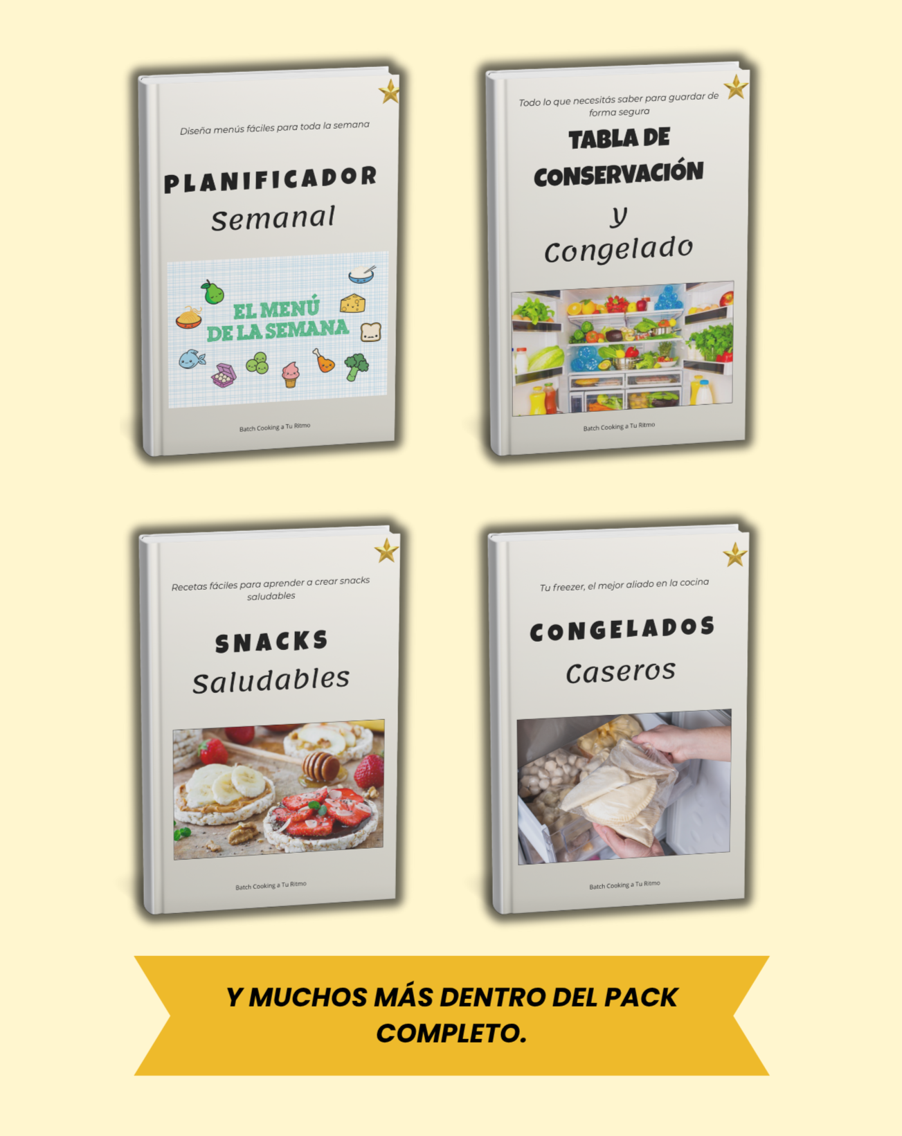 Batch Cooking a tu Ritmo no es una dieta ni un simple recetario. Es un método de cambio de hábitos, pensado para ayudarte a organizar tu vida, mejorar tu alimentación y reconectarte con la calma de tener todo bajo control, sin exigencias ni culpa.